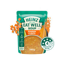Warm up your day with Heinz Eat Well Pumpkin & Lentil Soup! This 380g pouch is packed with creamy pumpkin and hearty lentils, making every spoonful a cozy, tasty hug. Perfect for a quick, nutritious meal that’s as fun to eat as it is good for you!
